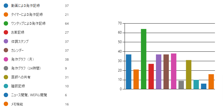 さらに「正確に記録し、伝える」という観点でも90%近い方が「そう思う」「一部そう思う」と回答いただきました。ご存知の通りてんかんの診療には、発作時の情報が治療方針に直結します。nanacaraとしても「簡単、だけど正確」な記録のサポートを目指して引き続き改善していきます。