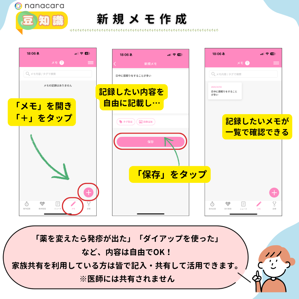 記録したメモが反映されていれば記録が完了です。(こちらのメモは医師には共有されません)