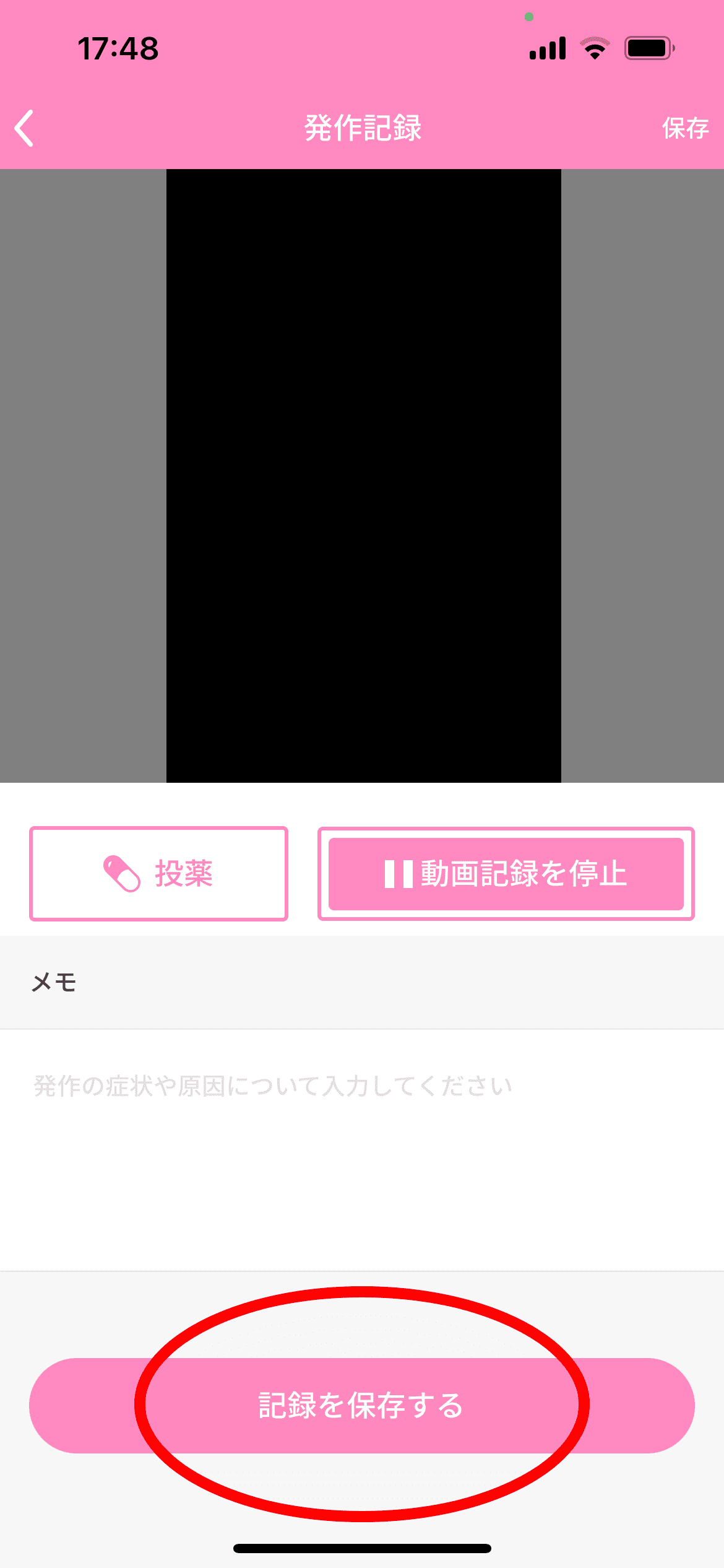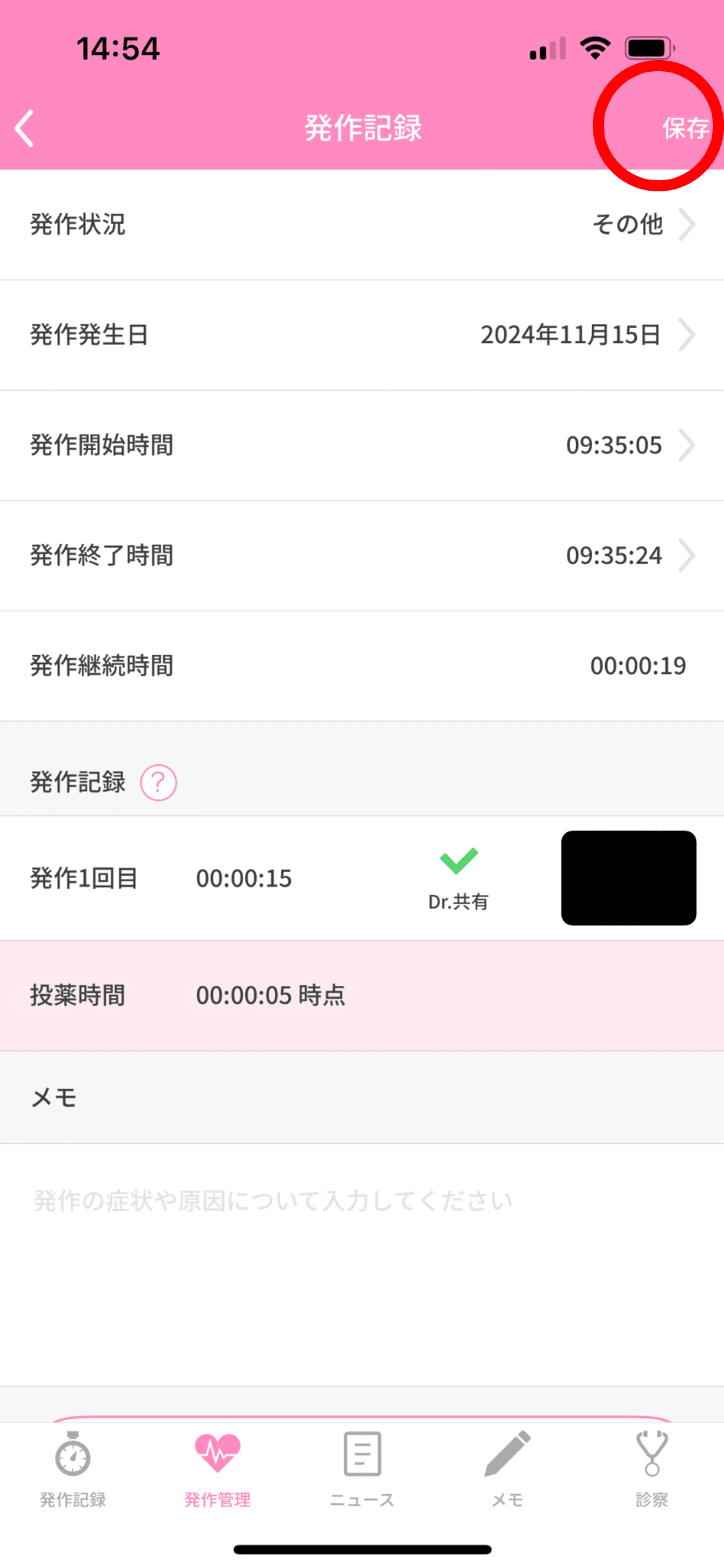 「✅」に変わり「記録を保存する」をタップすると、医師側に動画が共有されます。